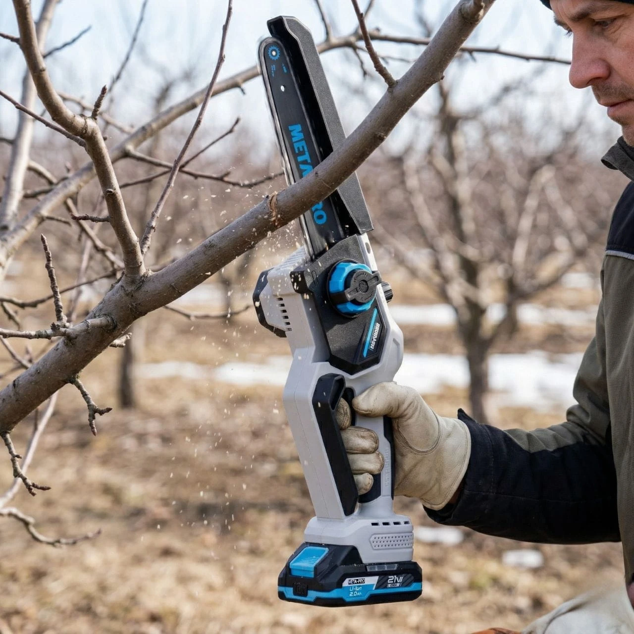 Pielęgnacja sadu i ogrodu: Szybkie przycinanie gałęzi, prześwietlanie koron drzew i formowanie krzewów.