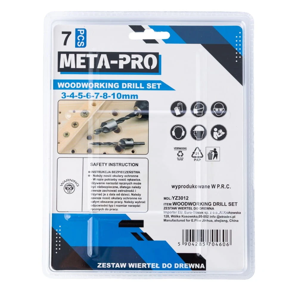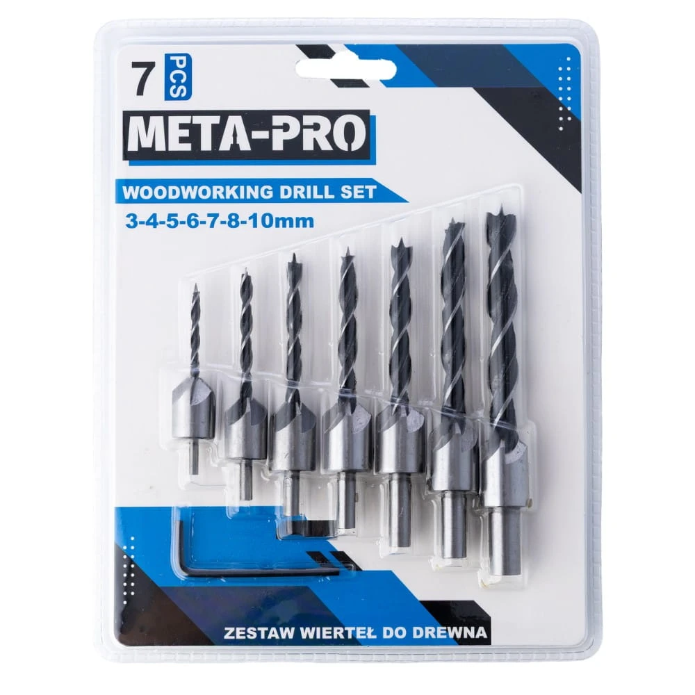 WIERTŁA DO DREWNA Z POGŁĘBIACZEM 7 ELEMENTÓW 3-10MM META-PRO