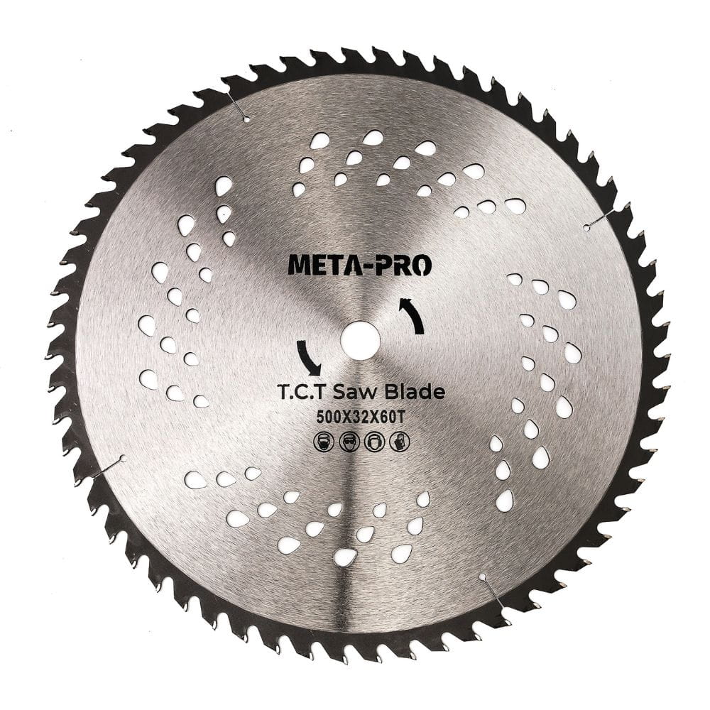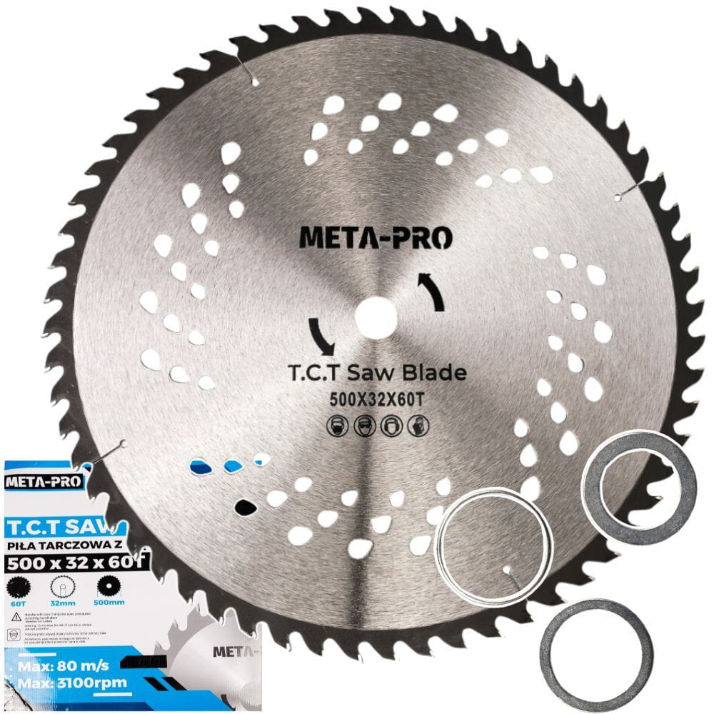 Ilość zębów (60T): Należy pamiętać, że przy tak dużej średnicy (500 mm), liczba 60 zębów oznacza rzadkie uzębienie (dużą podziałkę). Jest to konfiguracja do cięcia szybkiego i wydajnego. Duże odstępy między zębami pozwalają na skuteczne wyrzucanie wiórów przy głębokim cięciu, co zapobiega dławieniu się piły w grubym materiale.