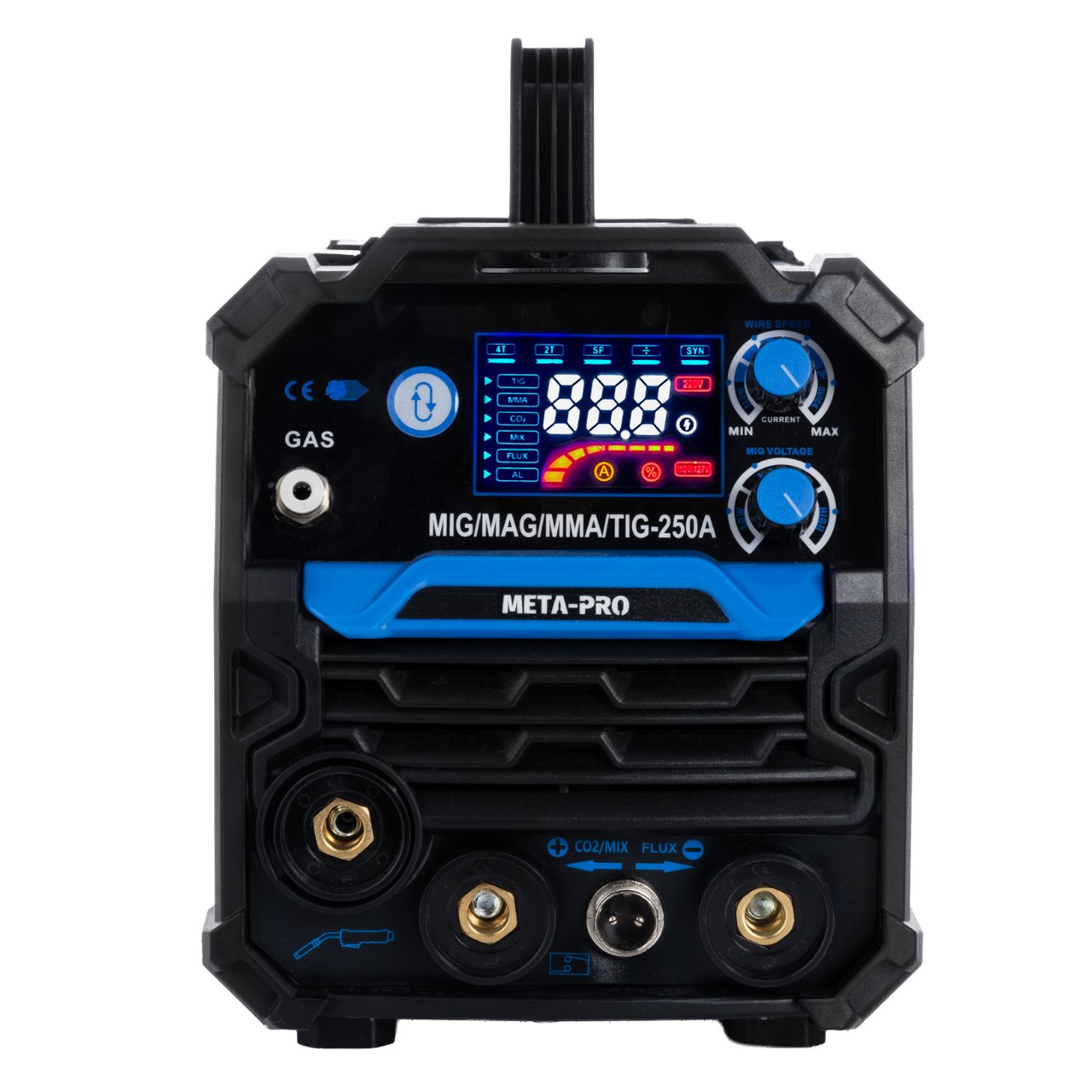 MIG/MAG (do 200A): Idealne do blacharki i konstrukcji. Obsługuje małe, poręczne szpule drutu (1 kg) o średnicach od 0.6 do 1.0 mm. Posiada tryby 2T i 4T.